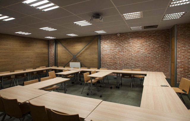 32 places en carré, 36 places en U, 60 places en théâtre en cocktail debout
